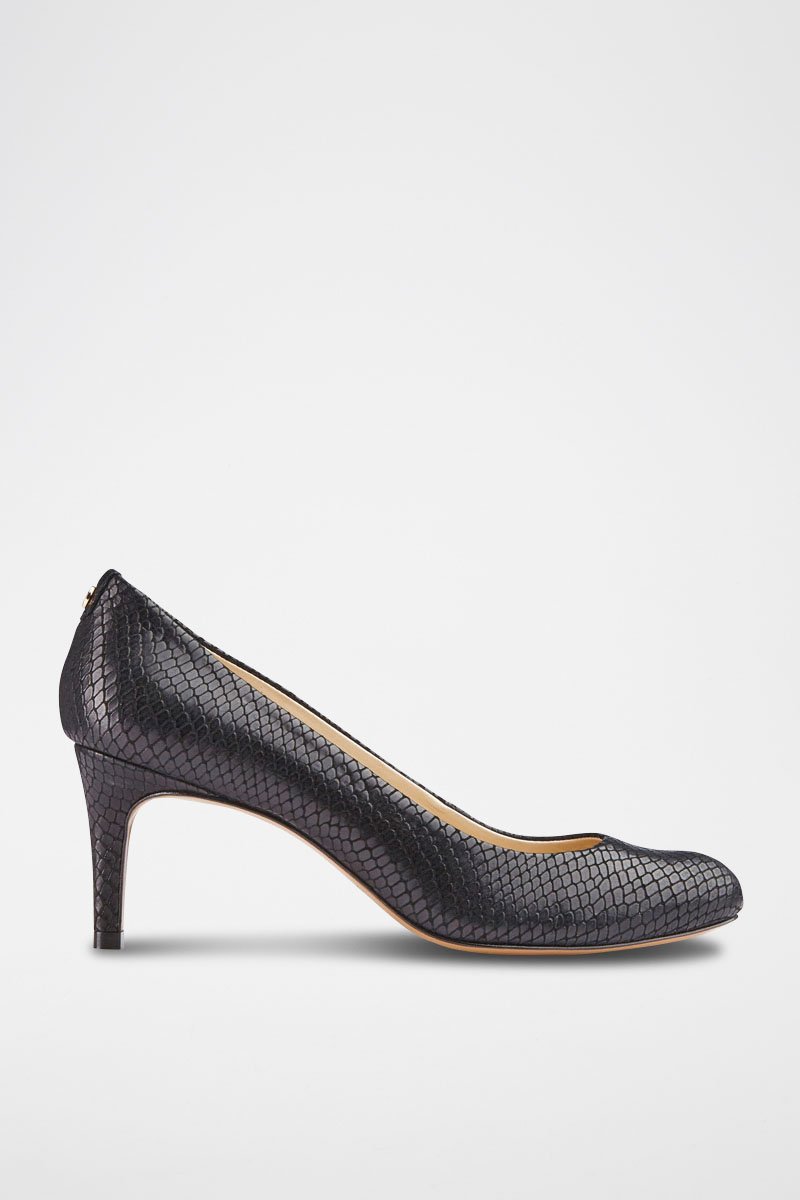 Sapatos de salto em couro de vaca.