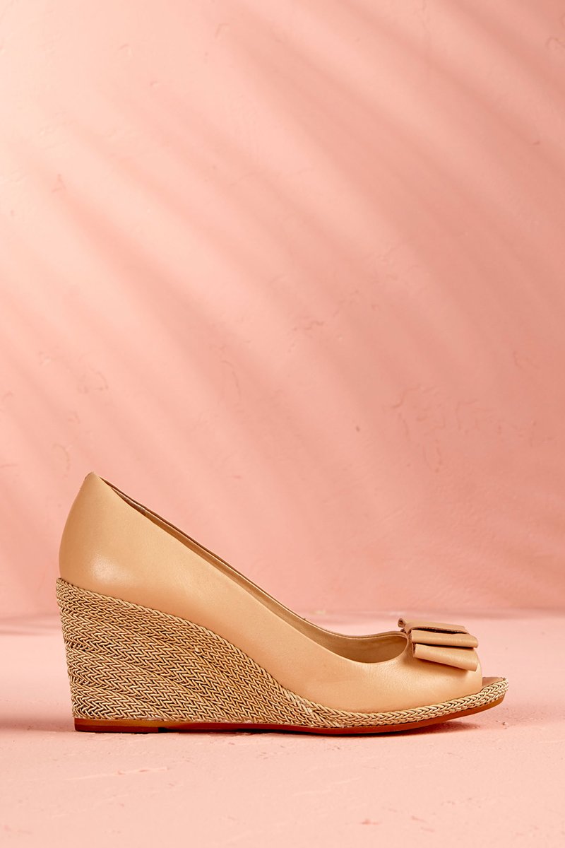 Sandálias de cunha em couro de vaca Mayana 2 - Nude