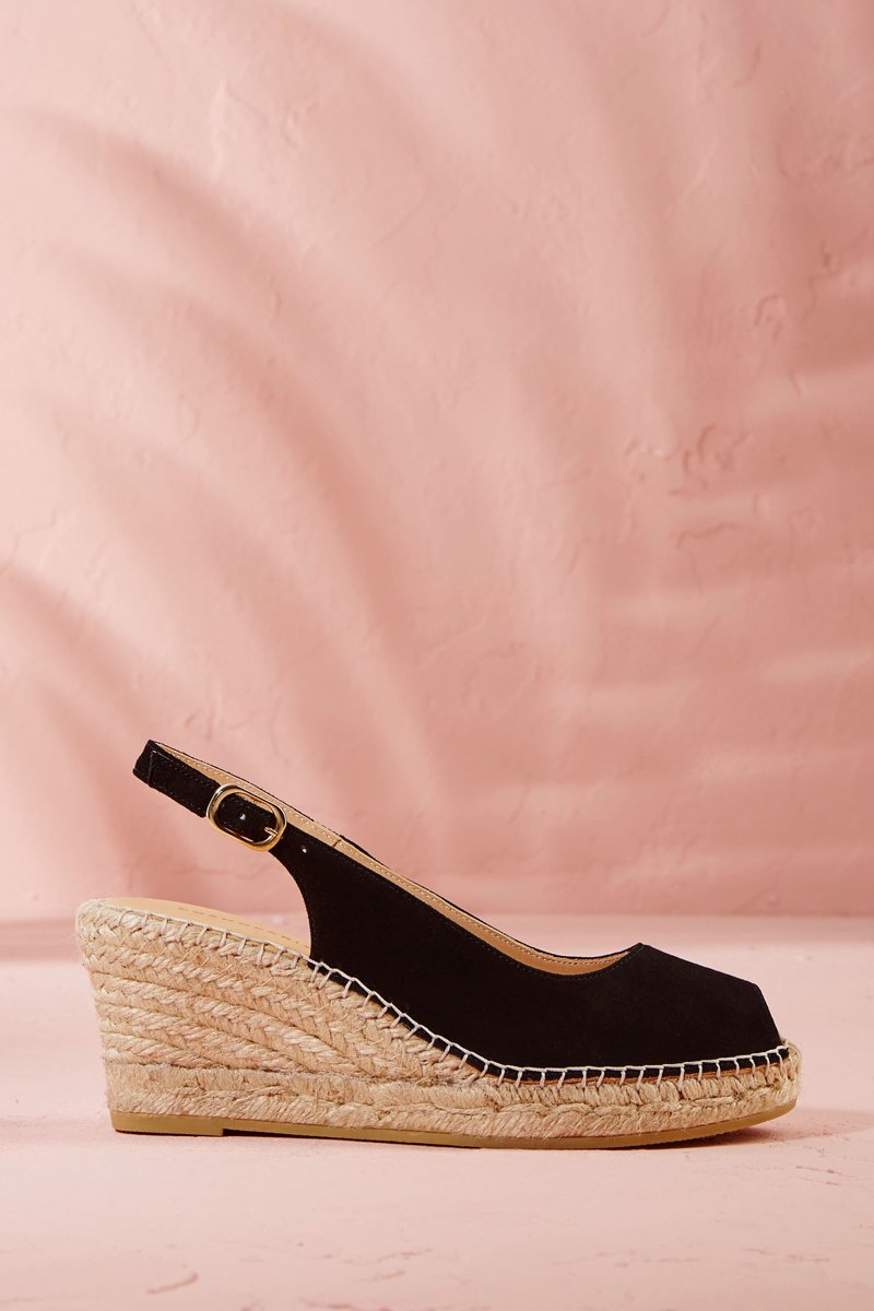 Alpargatas de cunha em couro de cabra Liviana - Preto