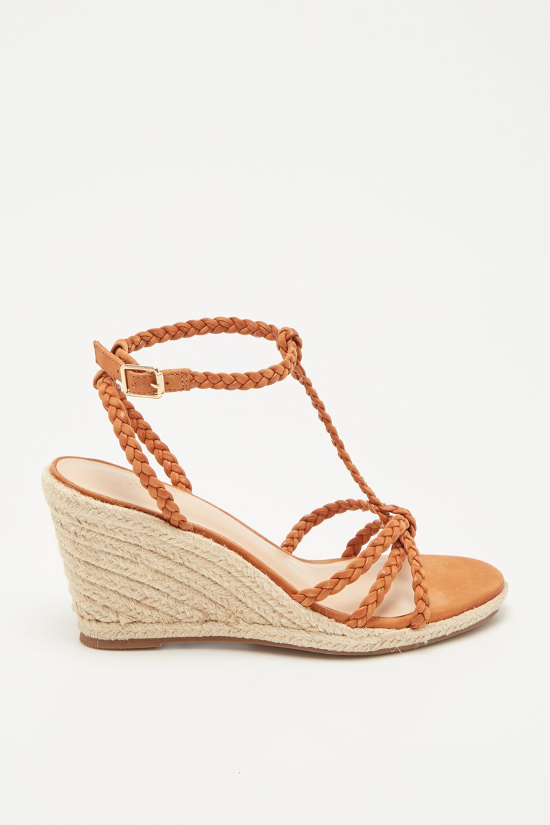 Sandálias com cunha entrançadas em nobuck.