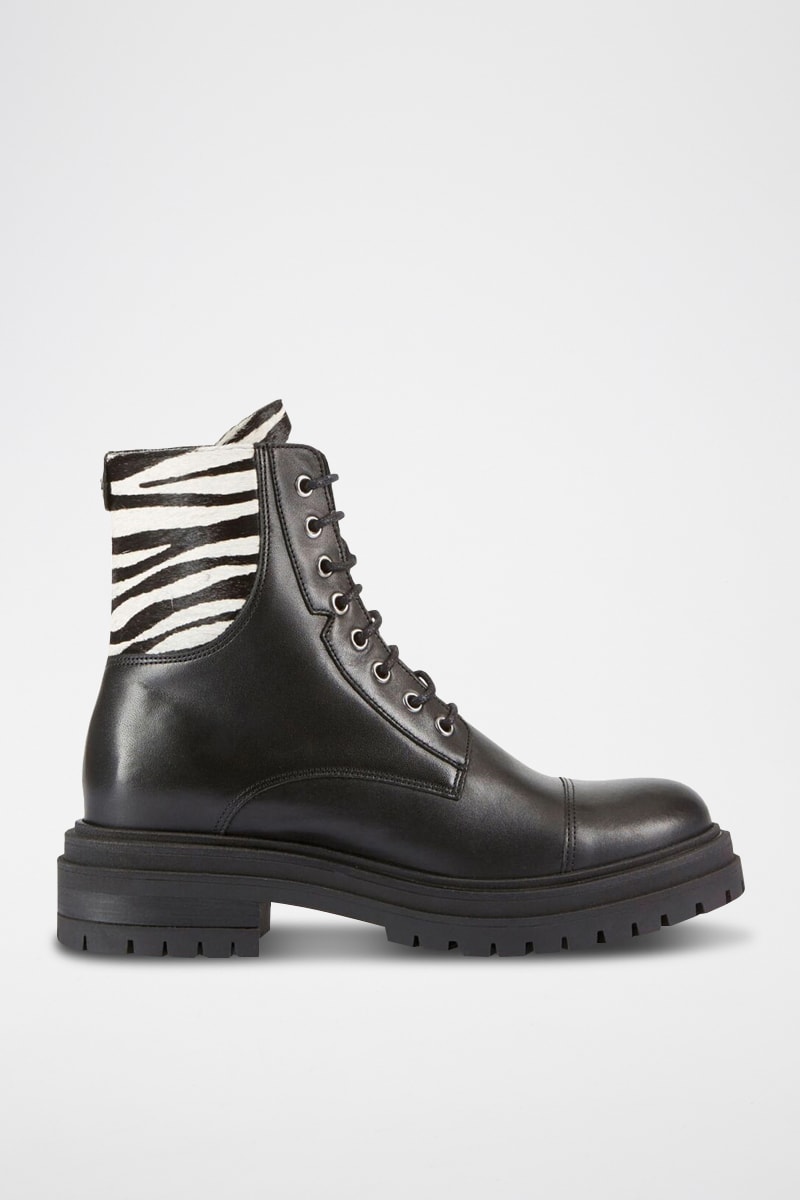 Efeito potro e com estampado de zebra na abertura.