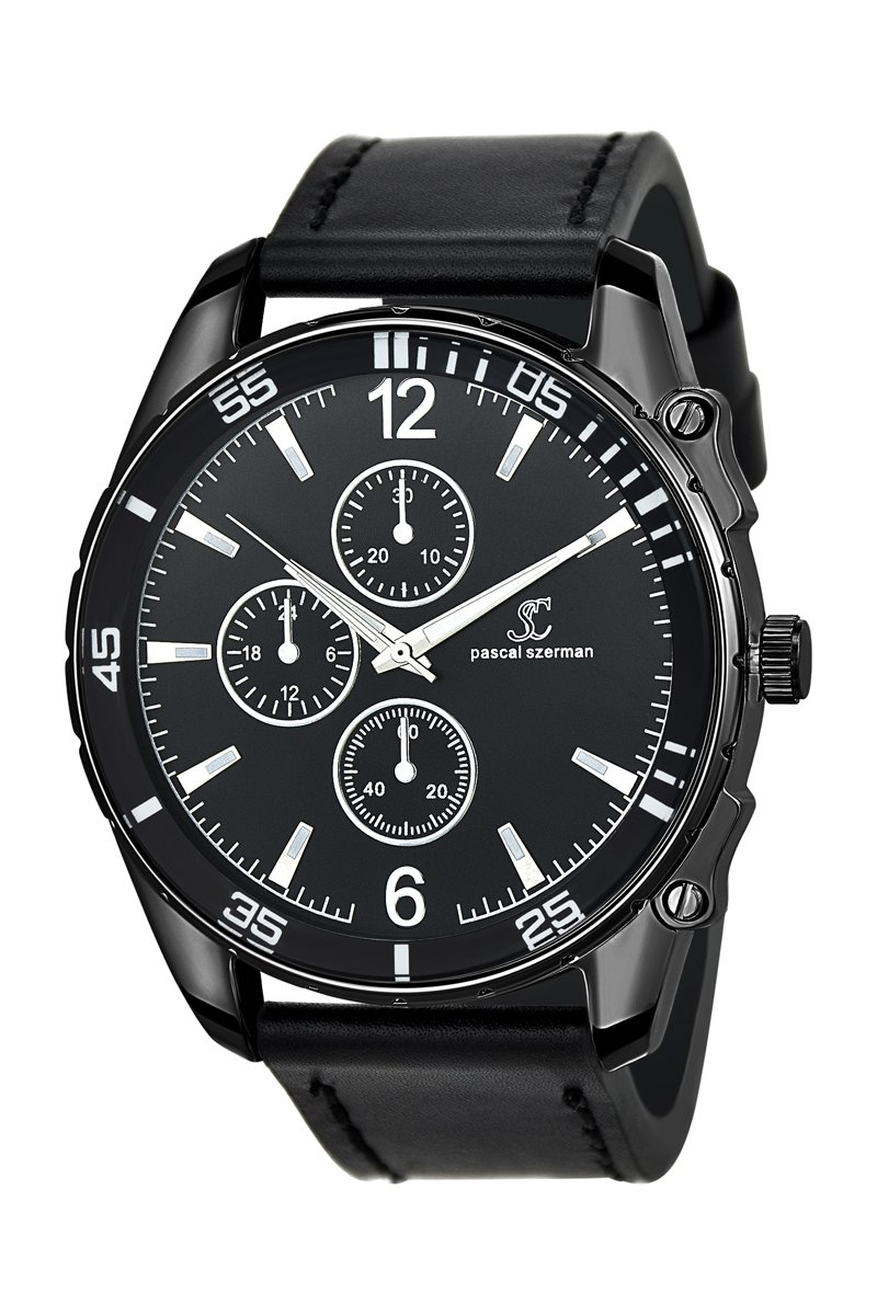 Relógio de quartzo em couro - Preto