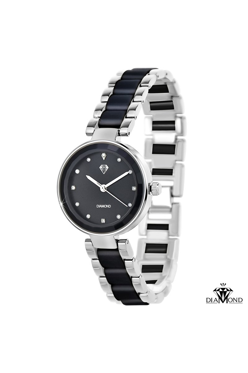 Relógio quartzo em metal e diamante