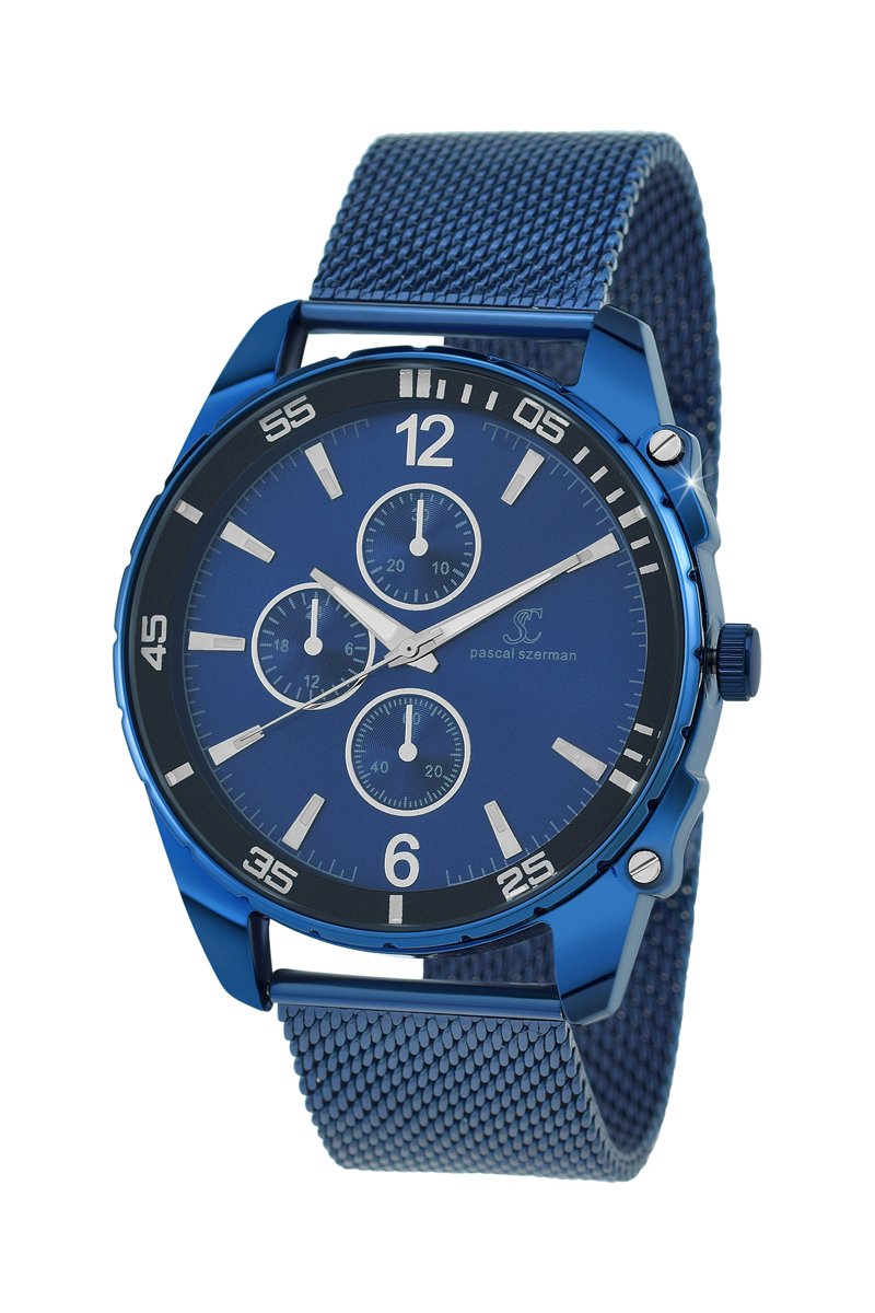 Relógio de quartzo em metal - Cronógrafo - Azul