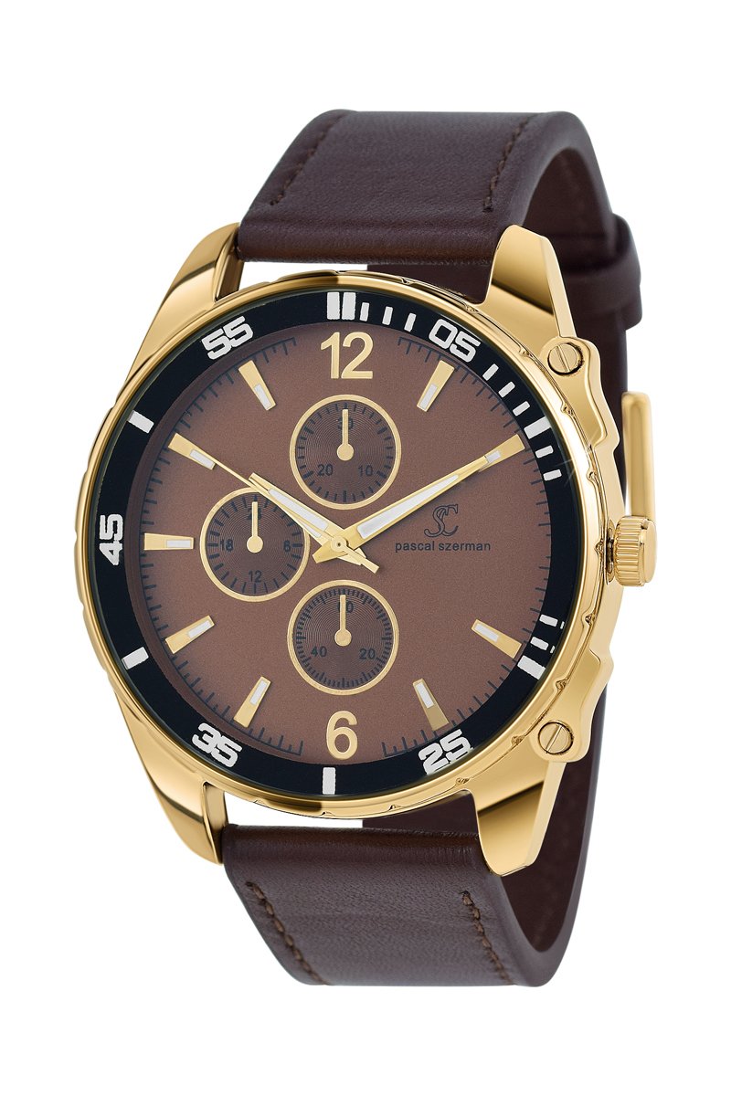 Relógio de quartzo em couro - Cronógrafo - Castanho e preto