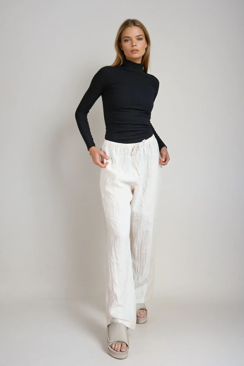 Calças em linho misturado.