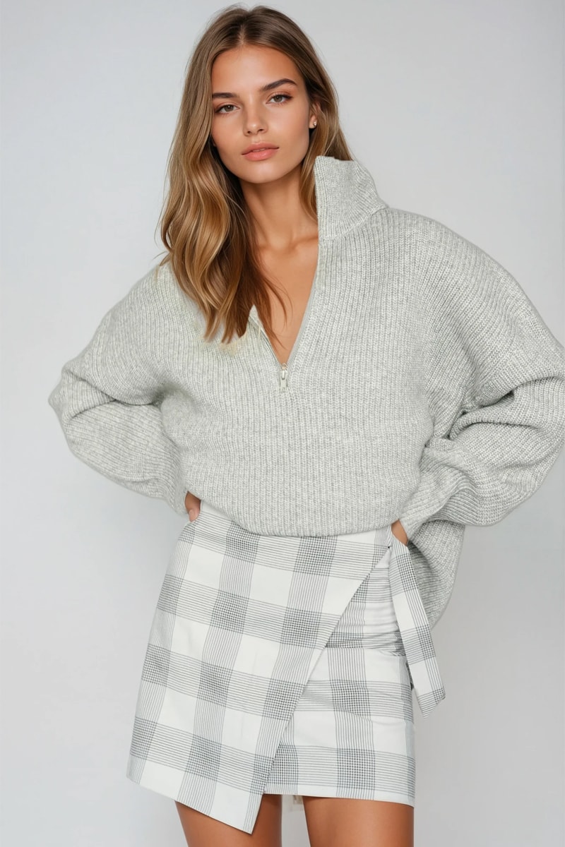 Saia traçada - Cinzento-claro e branco - Monki