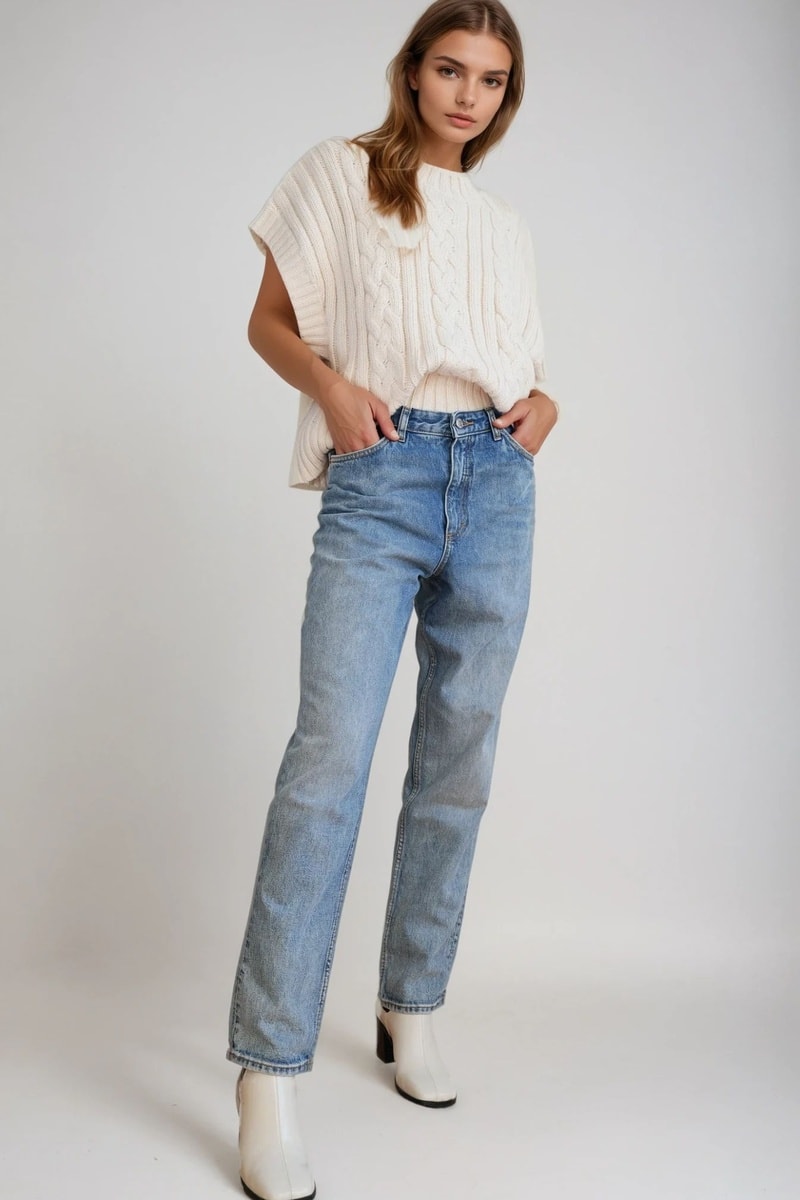 Calças de ganga de cintura alta - Azul-claro - Monki