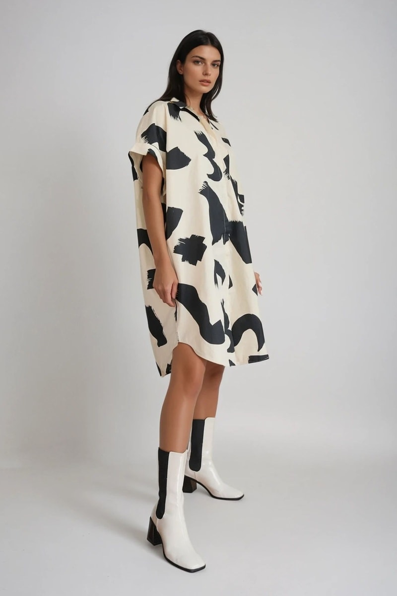 Vestido-camisa - Preto e bege - Monki