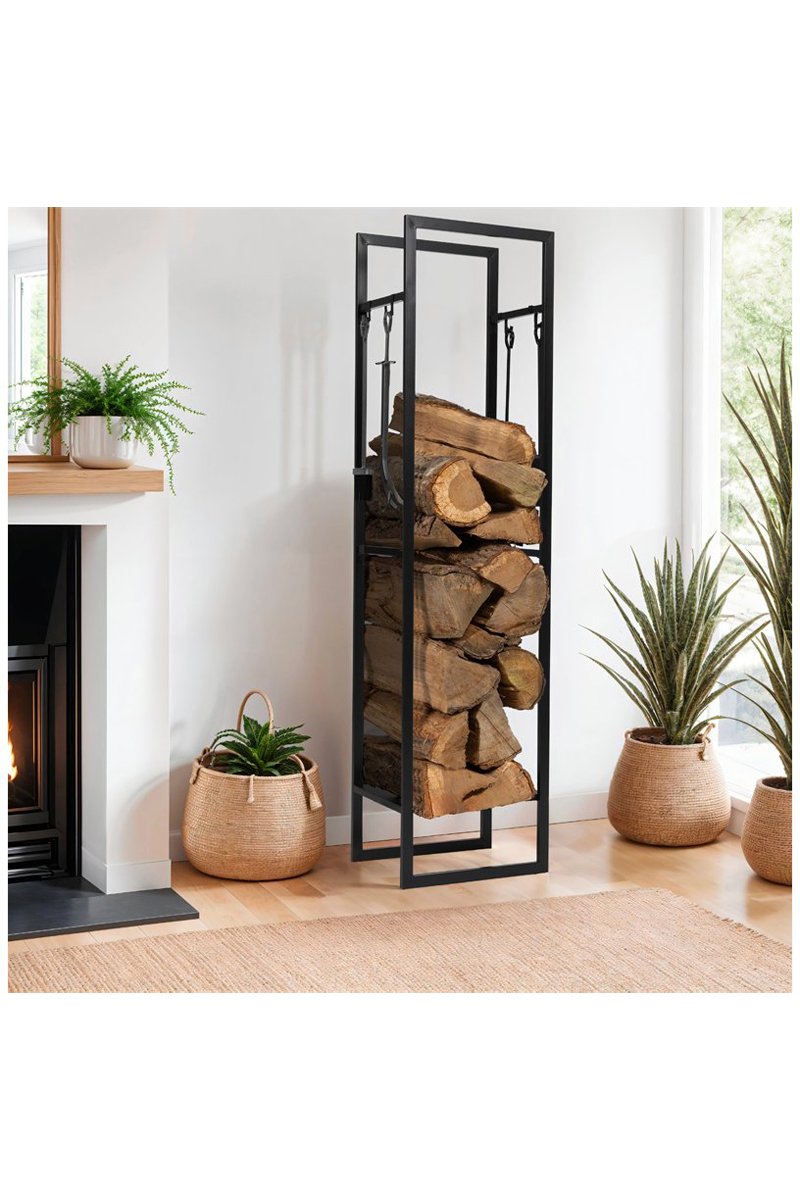 Suporte de lenha vertical e acessórios - 45 x 170 x 30 cm