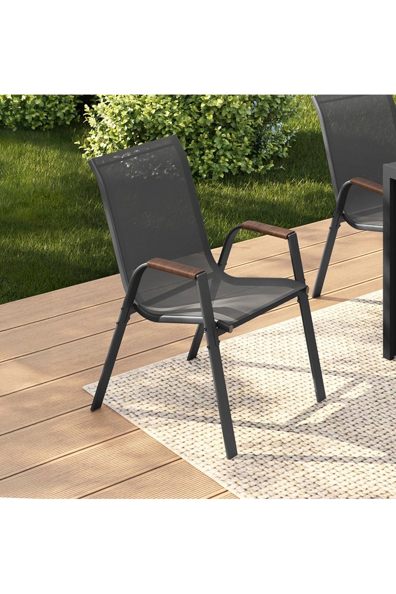 Cadeiras de jardim Ozéa em textileno e vime - conjunto de 6