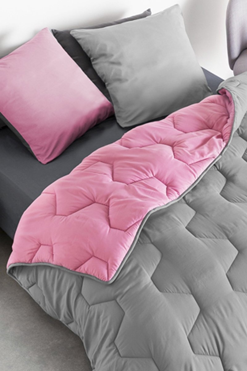 Edredão quente reversível bicolor microfibra 300 g/m² + 1 Almofada semi-firme