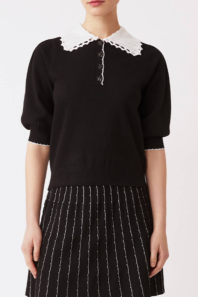 Camisola de mangas curtas volumosas.