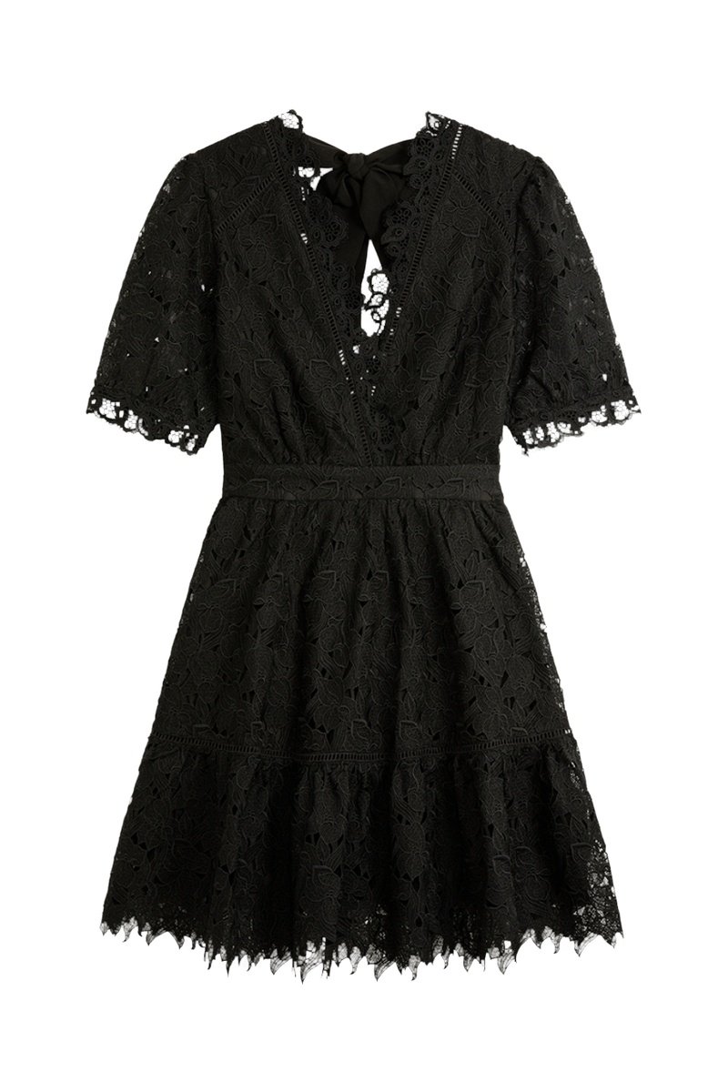 Vestido estilo patinadora em renda - Preto
