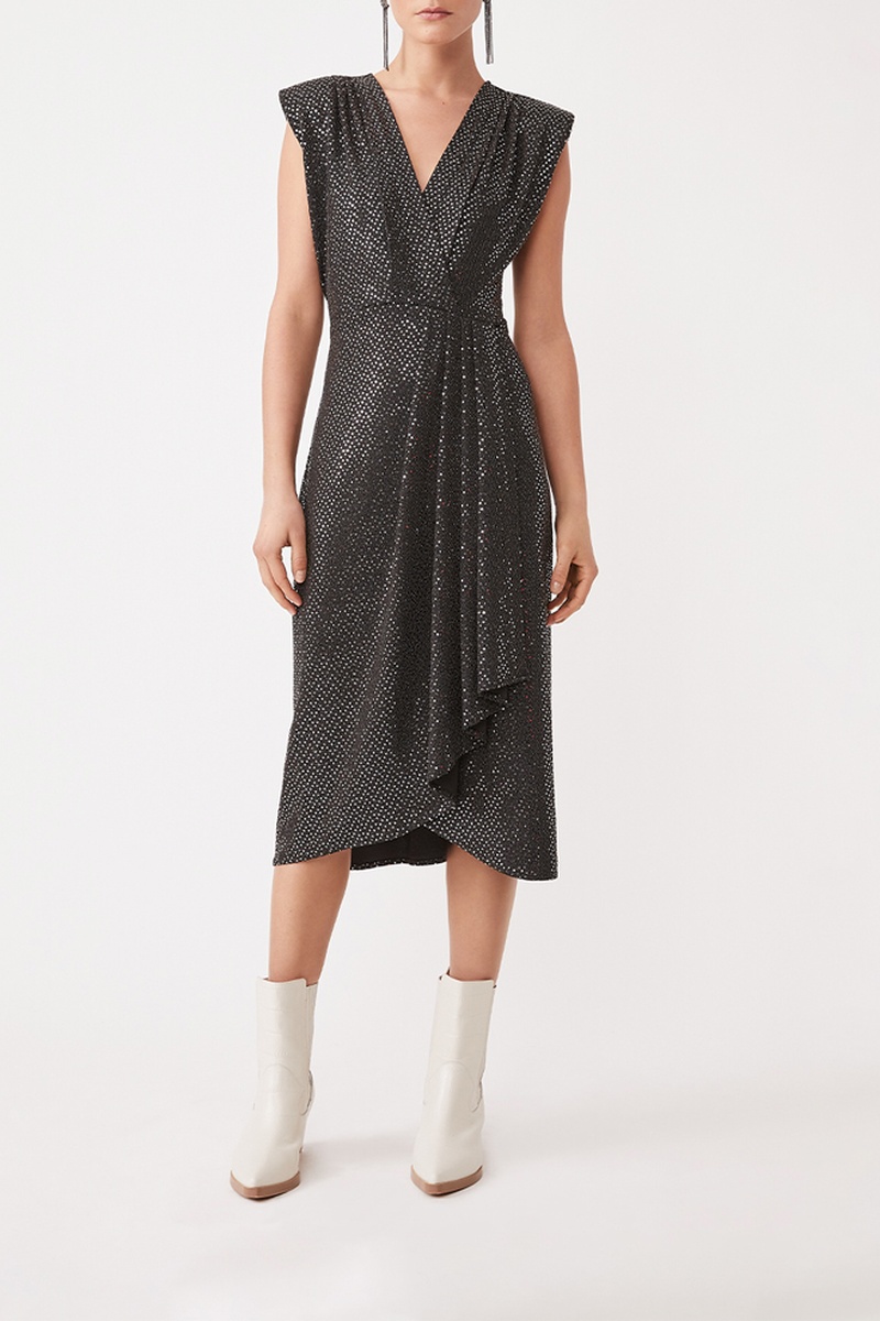 Vestido traçado com purpurinas.