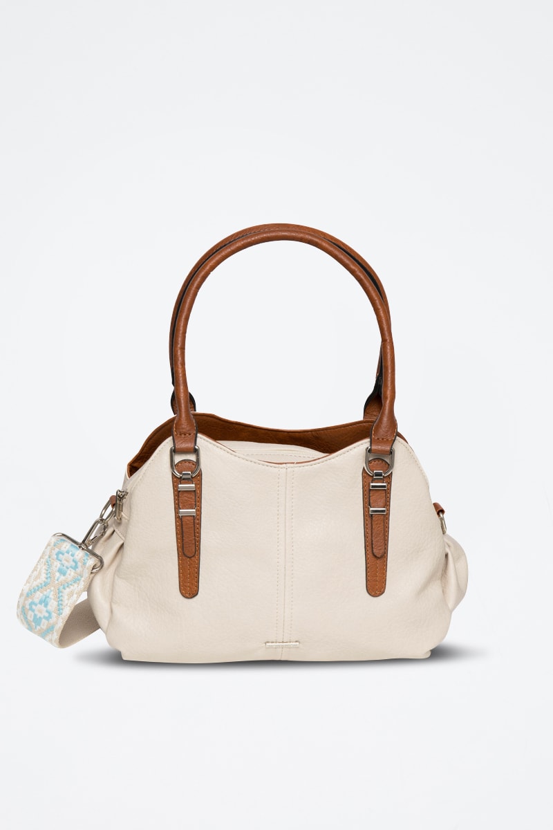 Alça de tiracolo regulável e amovível com estampado decorativo.