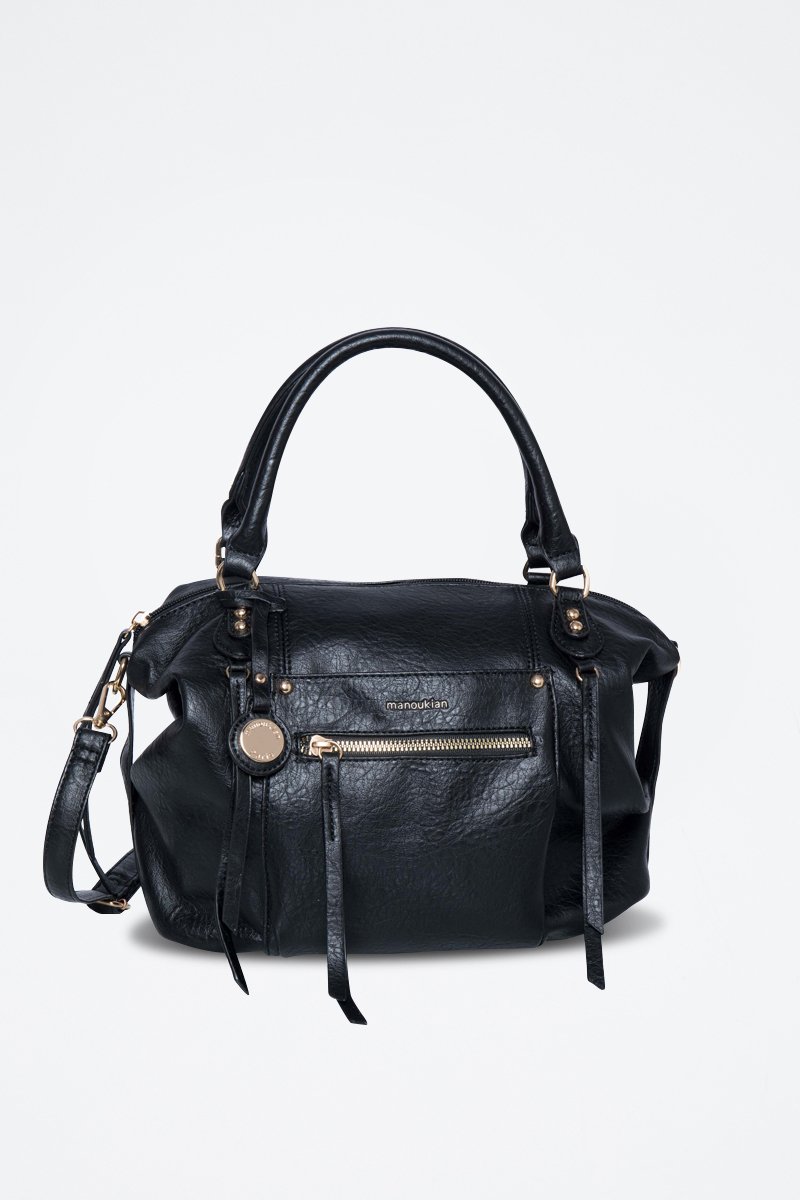 Bolso com fecho zip, tira amovível com aplicação e logótipo metálico à frente.