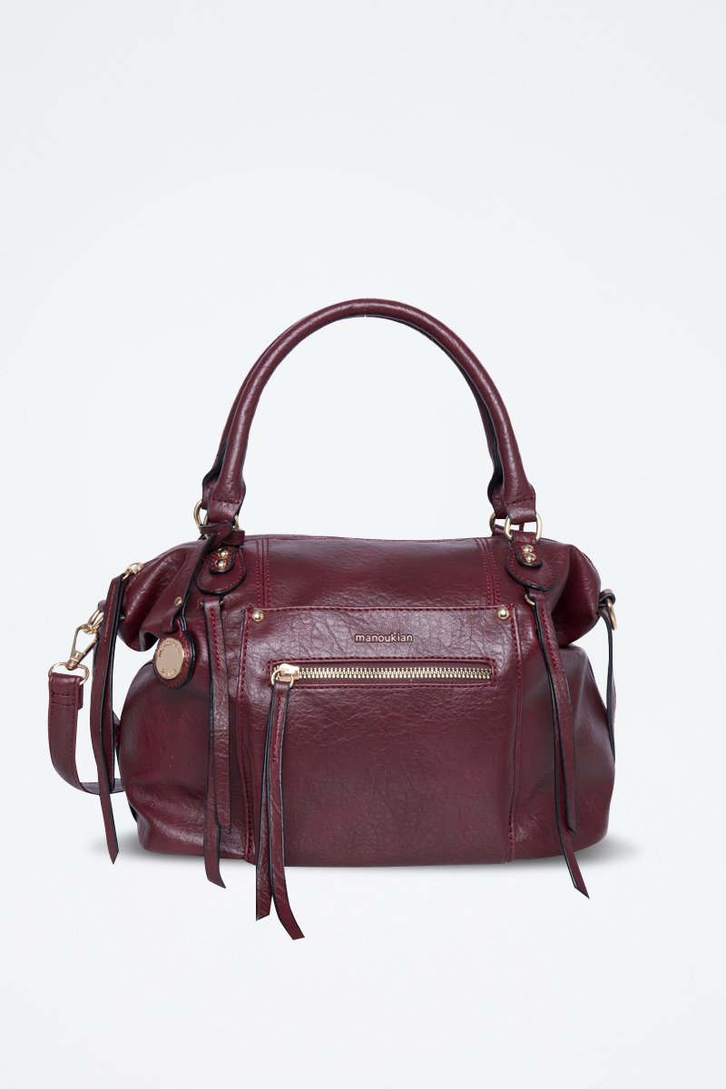 Bolso com fecho zip, tira amovível com aplicação e logótipo metálico à frente.