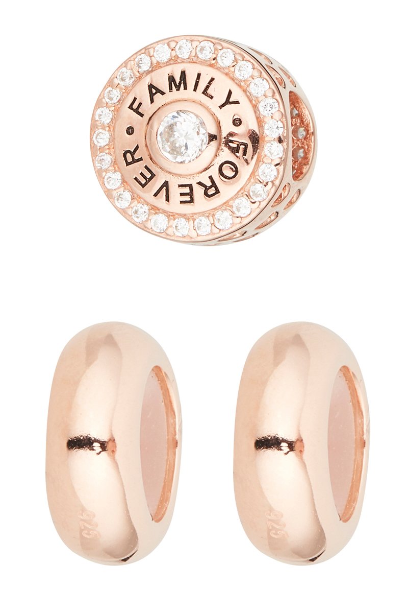 3 contas de prata banhada a ouro rosa das quais 1 com zircónios.