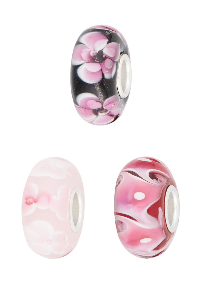 3 contas de prata e vidro de Murano.