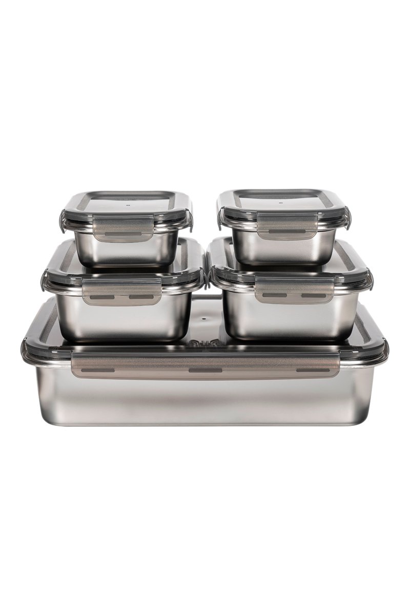 5 caixas de conservação em aço inoxidável com: