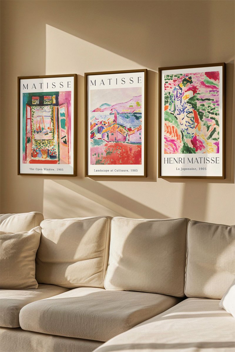 3 quadros "Janela Aberta, Collioure, 1905", "Paisagem em Collioure, "1905" e "La japonaise au bord de l'eau, 1905" Henri Matisse - 33 x 48 cm
