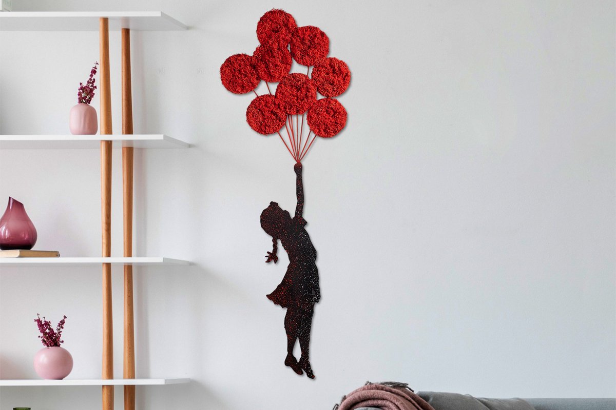 Decoração de parede "La Petite Fille au Ballon" de Banksy - 100 x 34 cm - Preto e vermelho
