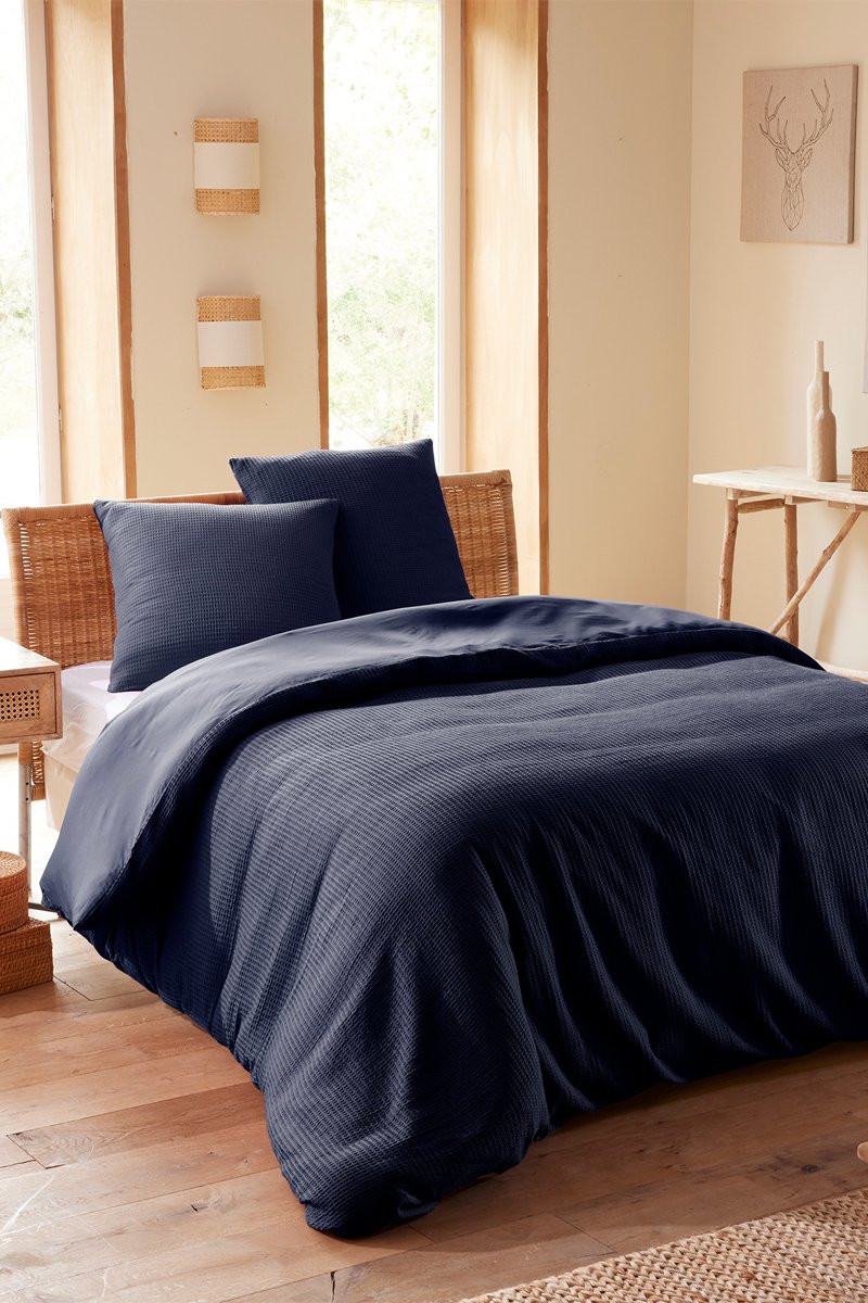 Conjunto de edredão em algodão colmeia 57 fios/cm² - Azul-escuro