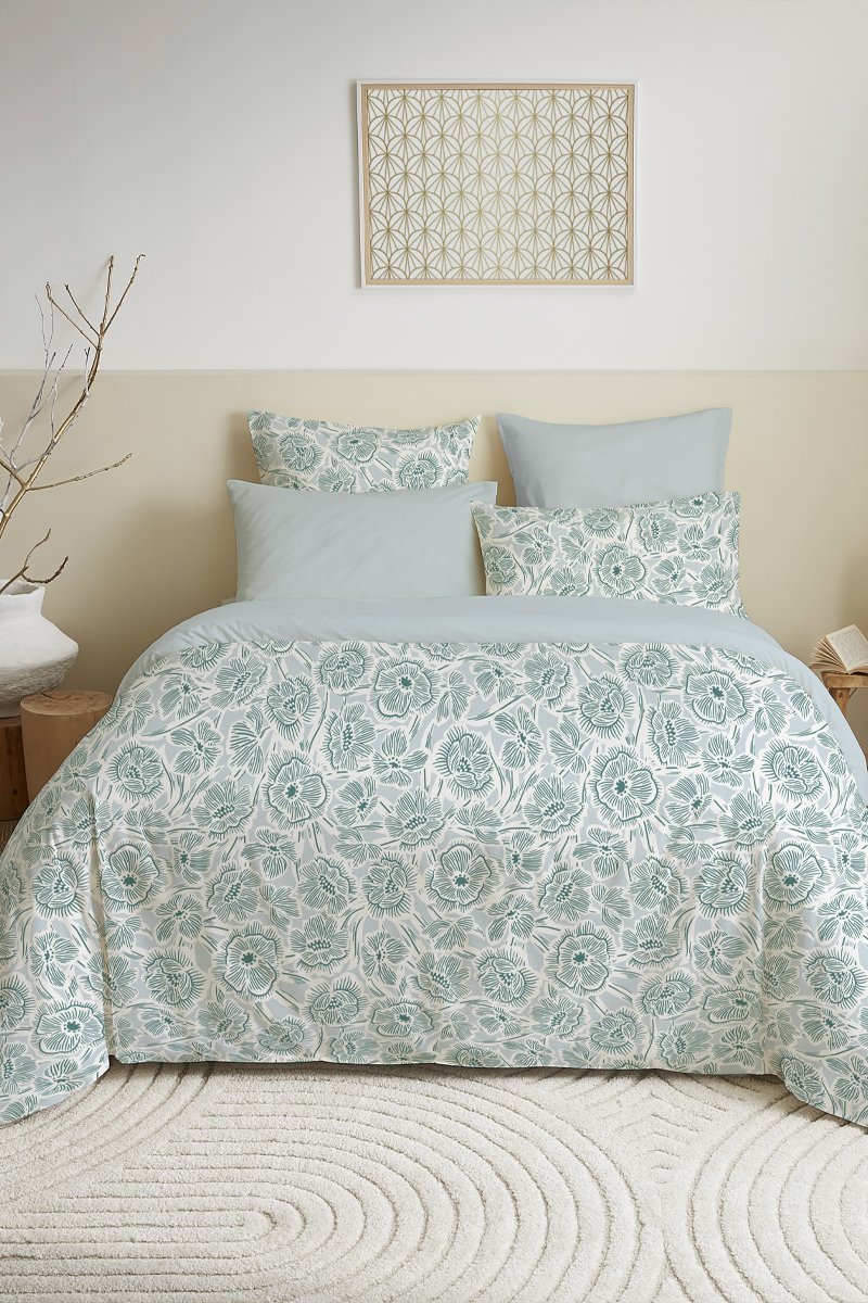 Conjunto de edredão reversível em algodão 57 fios/cm² - Azul e branco