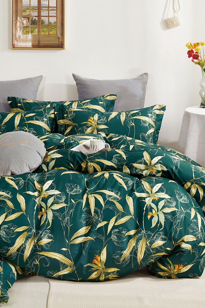 Conjunto de edredão reversível em percal de algodão 80 fios/cm² - Verde