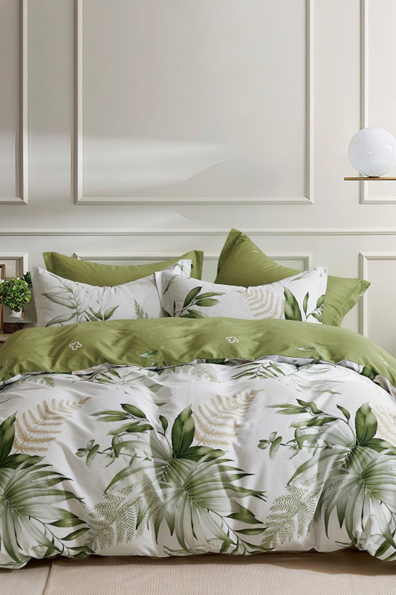 Conjuntos de edredão em percal de algodão 80 fios/cm² - Verde e branco