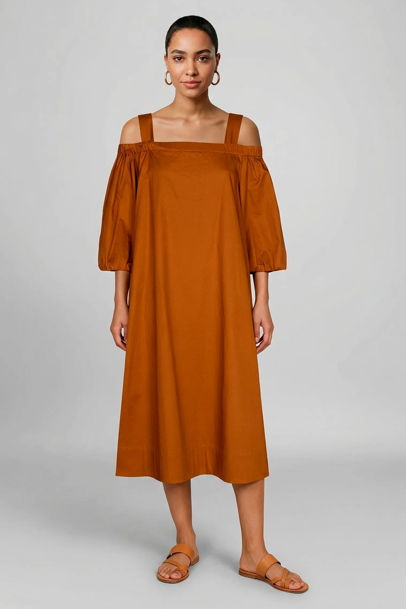 Vestido trapézio - Castanho