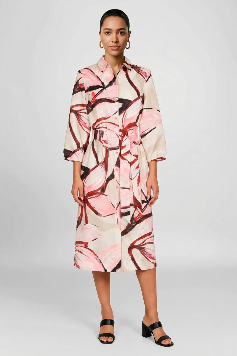Vestido-camisa - Rosa e bege
