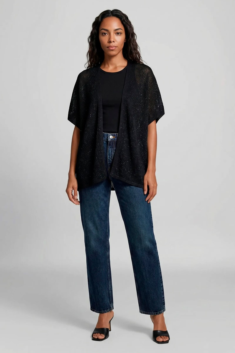 Composição: 41% poliéster reciclado, 38% viscose, 16% poliamida e 5% outras fibras