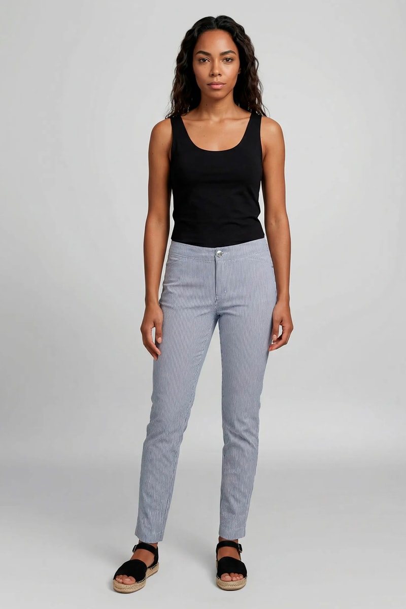 Composição: 59% poliéster, 26% algodão, 12% viscose e 3% elastano