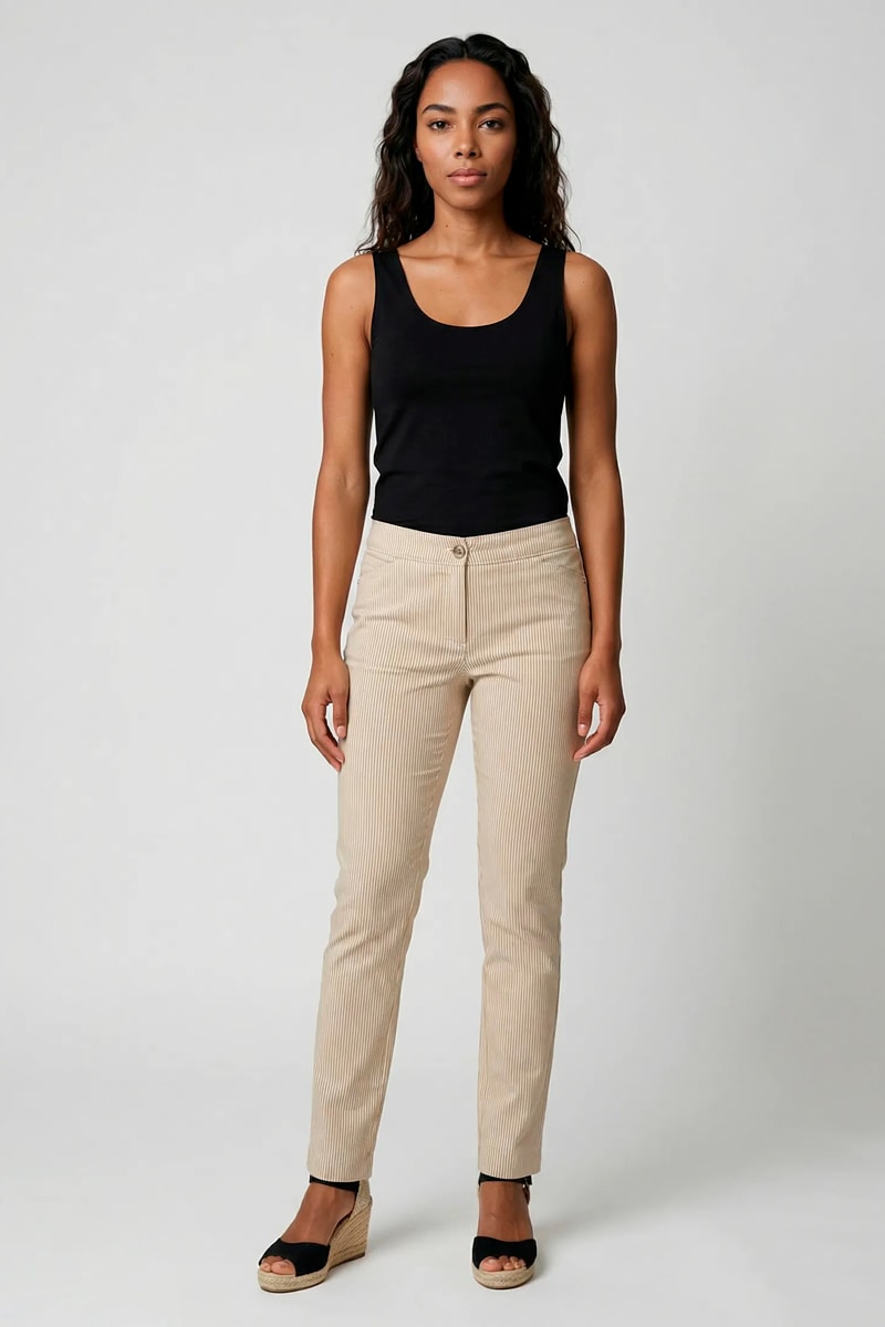 Composição: 59% poliéster, 26% algodão, 12% viscose e 3% elastano