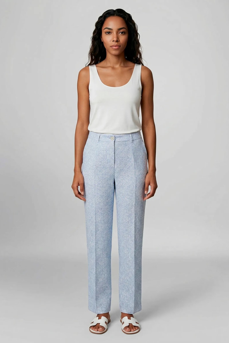 Calças largas - Azul-celeste e branco