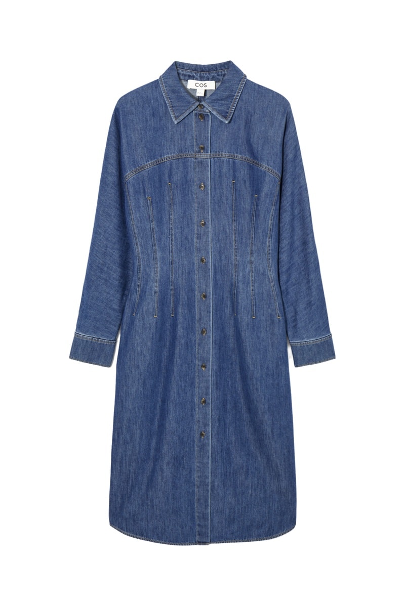 Vestido-camisa de ganga de mangas compridas.
