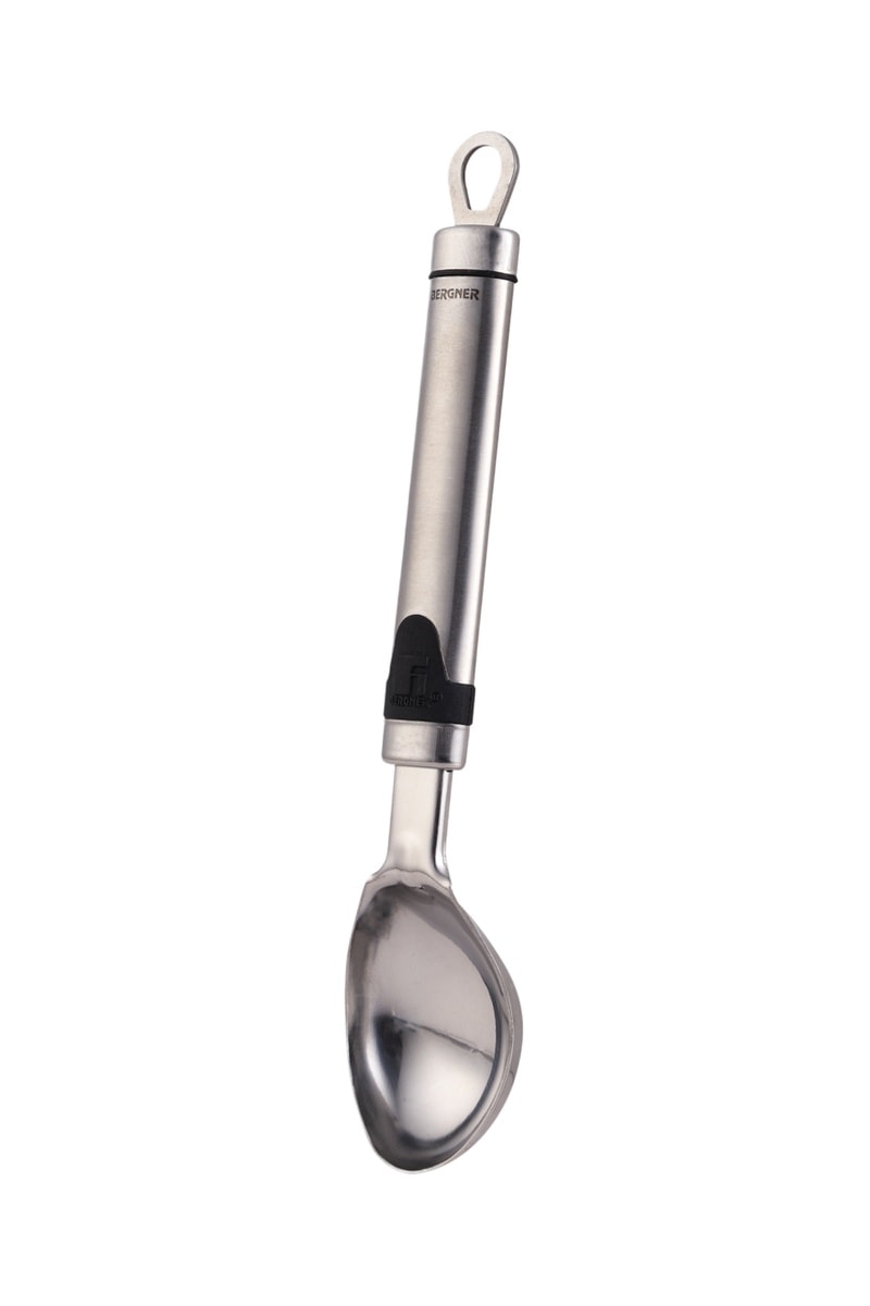 Colher para gelo em aço inoxidável.