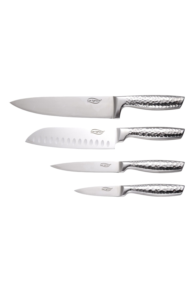 4 facas em aço inoxidável com: