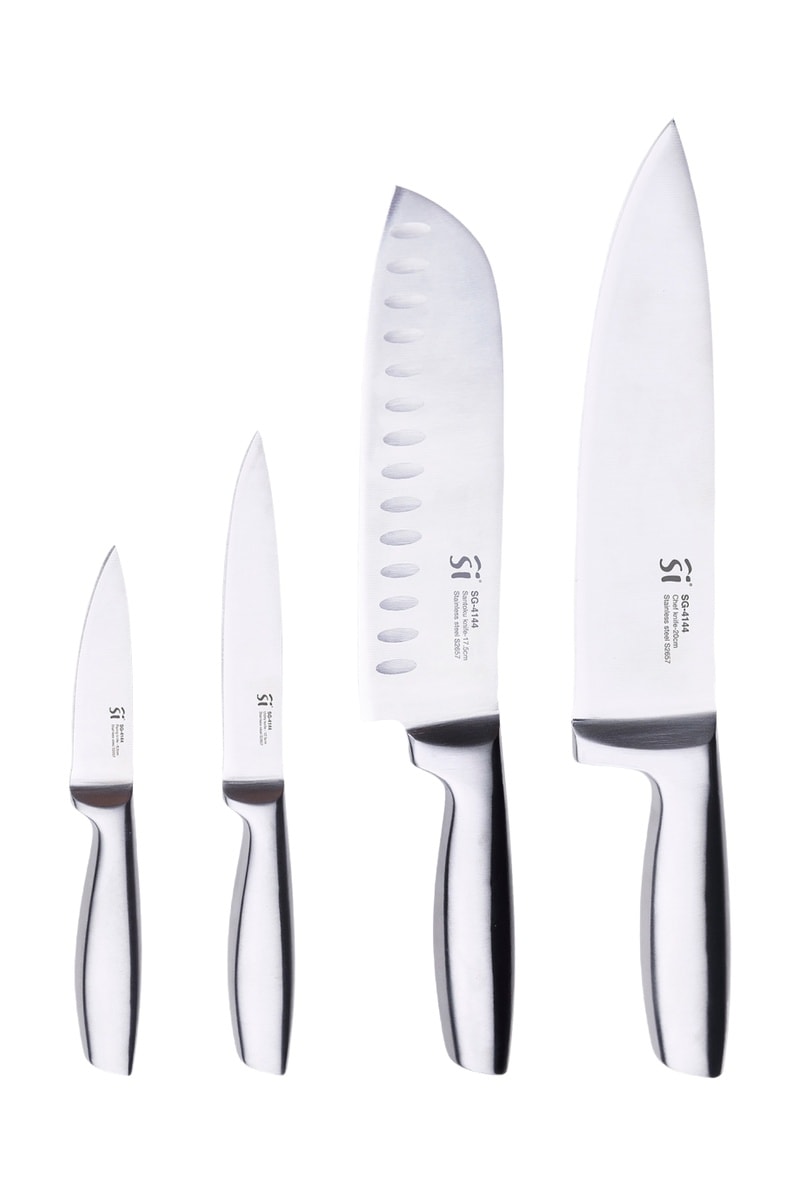 4 facas em aço inoxidável com: