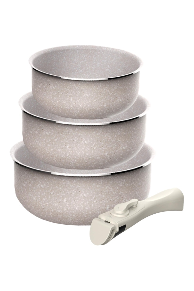 - 3 frigideiras empilháveis - 16, 18 e 20 cm