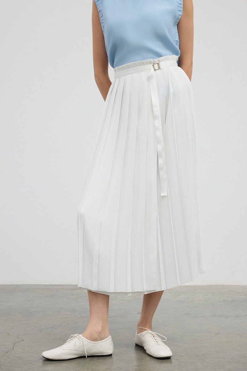 Saia plissada de cintura alta - Branco