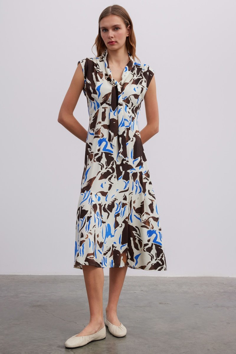 Vestido midi de mangas curtas.