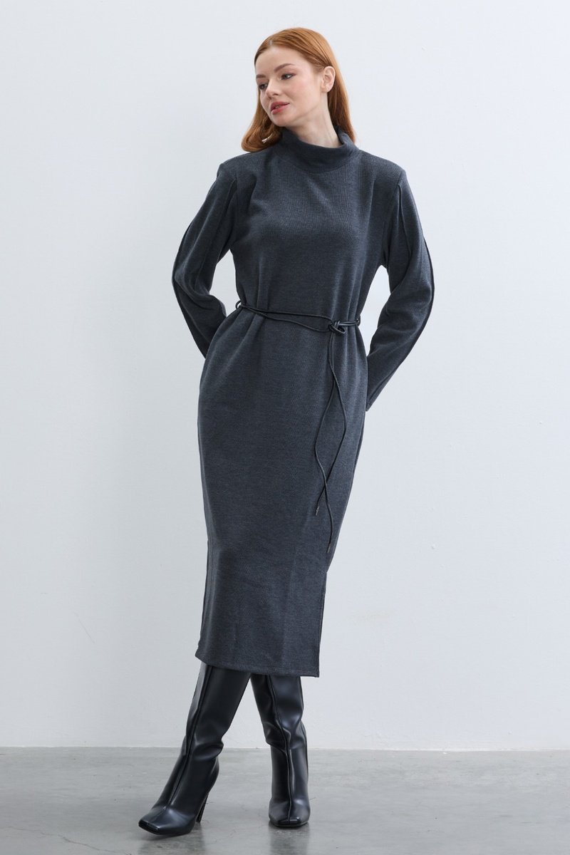 Vestido midi de mangas compridas.