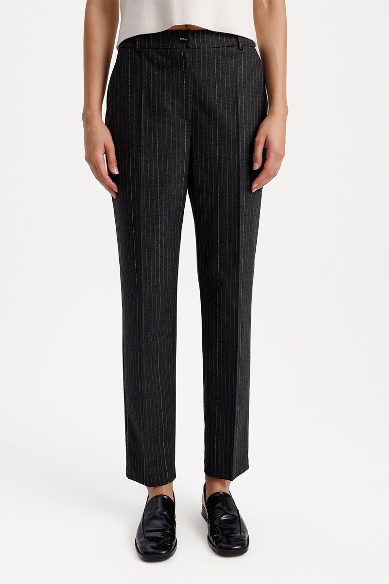 O modelo mede 1,79 m e veste o artigo no tamanho 36.