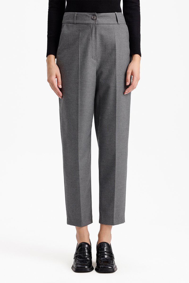 Calças estilo cenoura 7/8 cintura subida - Cinzento