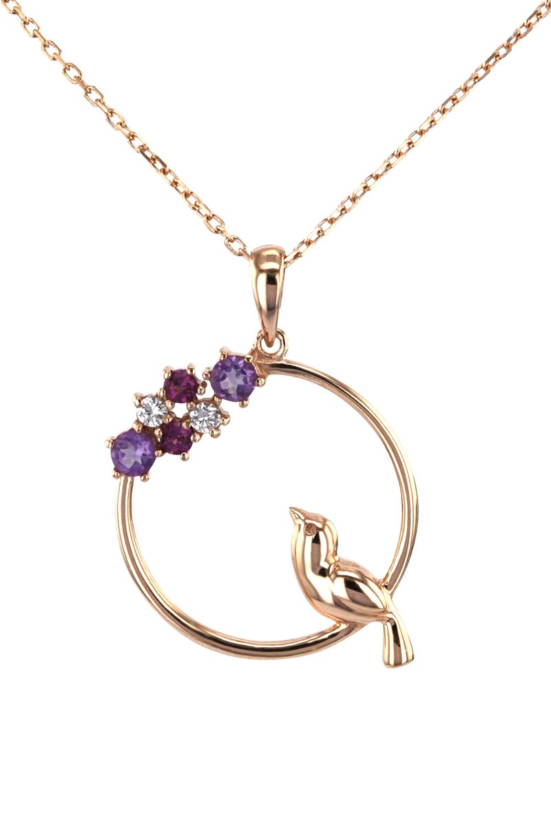 Colar de prata banhada a ouro rosa com ametistas, rodolitas granada e zircónios.