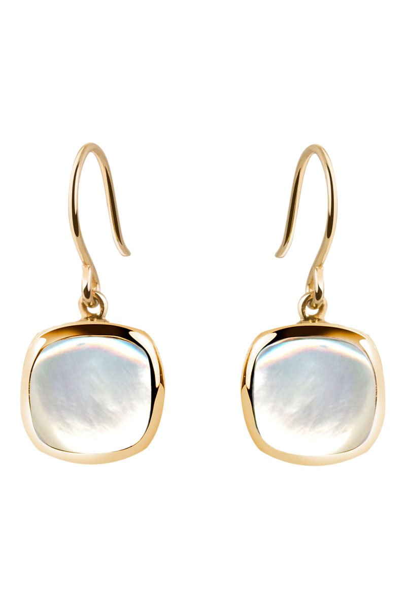 Brincos de prata banhada a ouro amarelo com madrepérola.