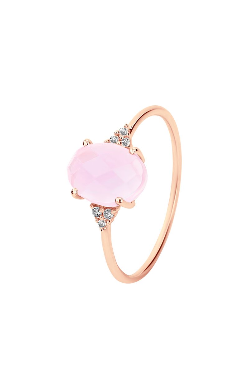 Anel - Prata banhada ouro rosa e quartzo rosa